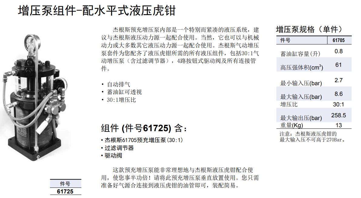 增壓泵組件-配水平式液壓虎鉗