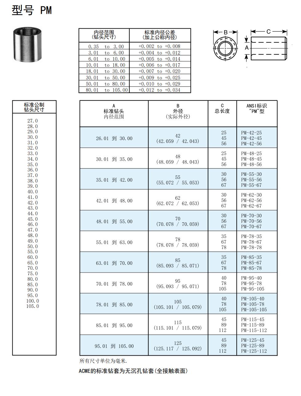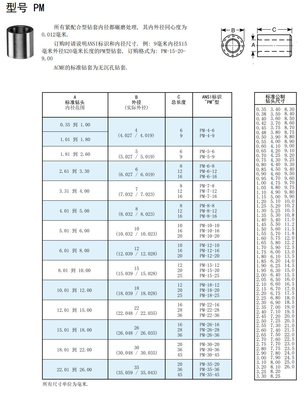 公制鉆套PM