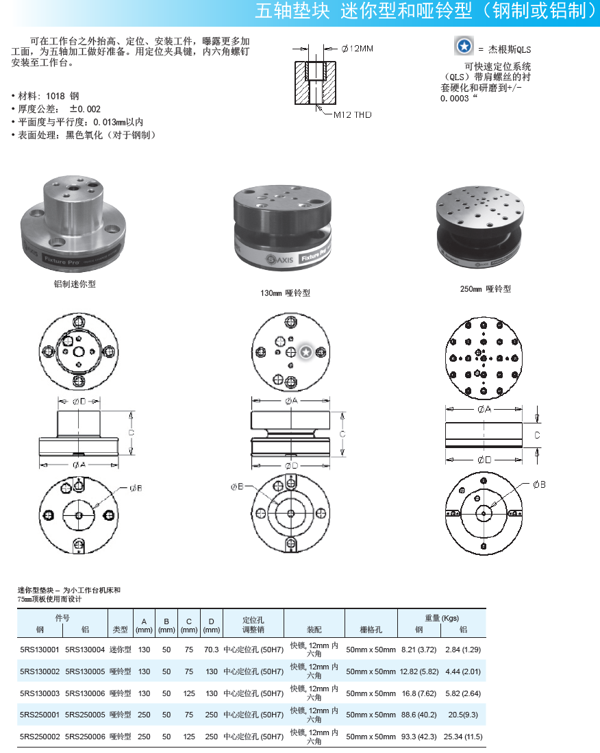 五軸墊塊 迷你型和啞鈴型(鋼制或鋁制)