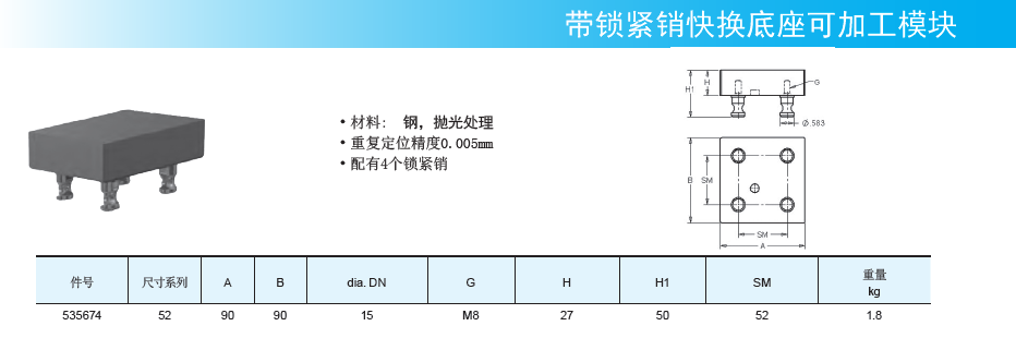 帶鎖緊銷快換底座可加工模塊