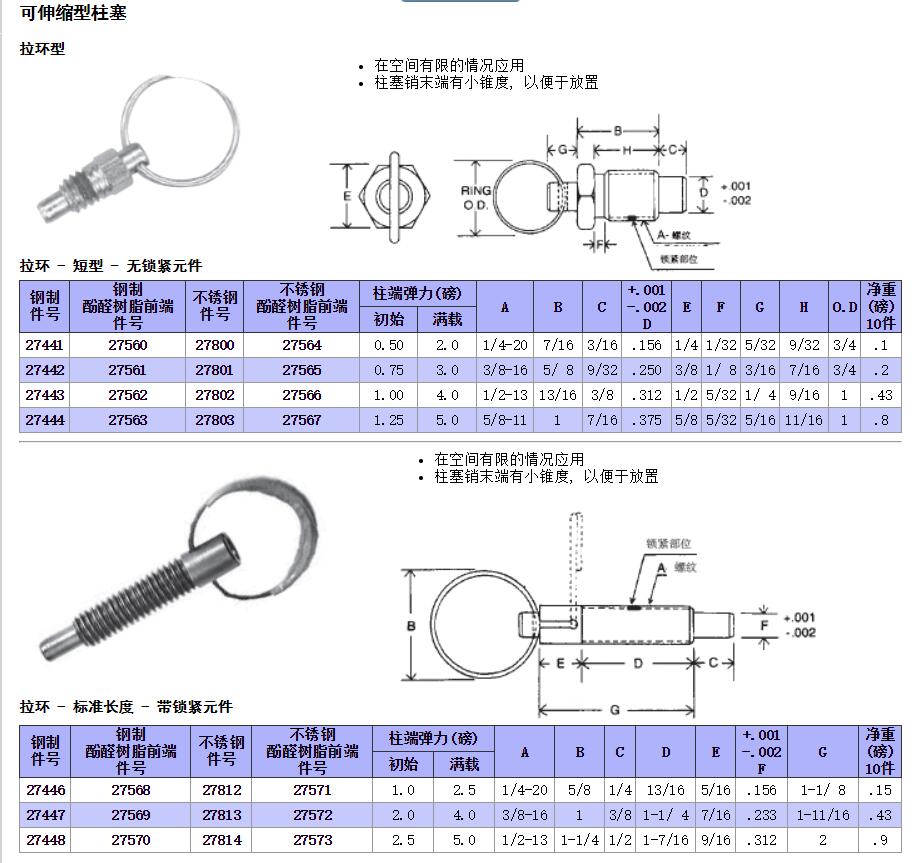 可伸縮型柱塞,拉環(huán)型