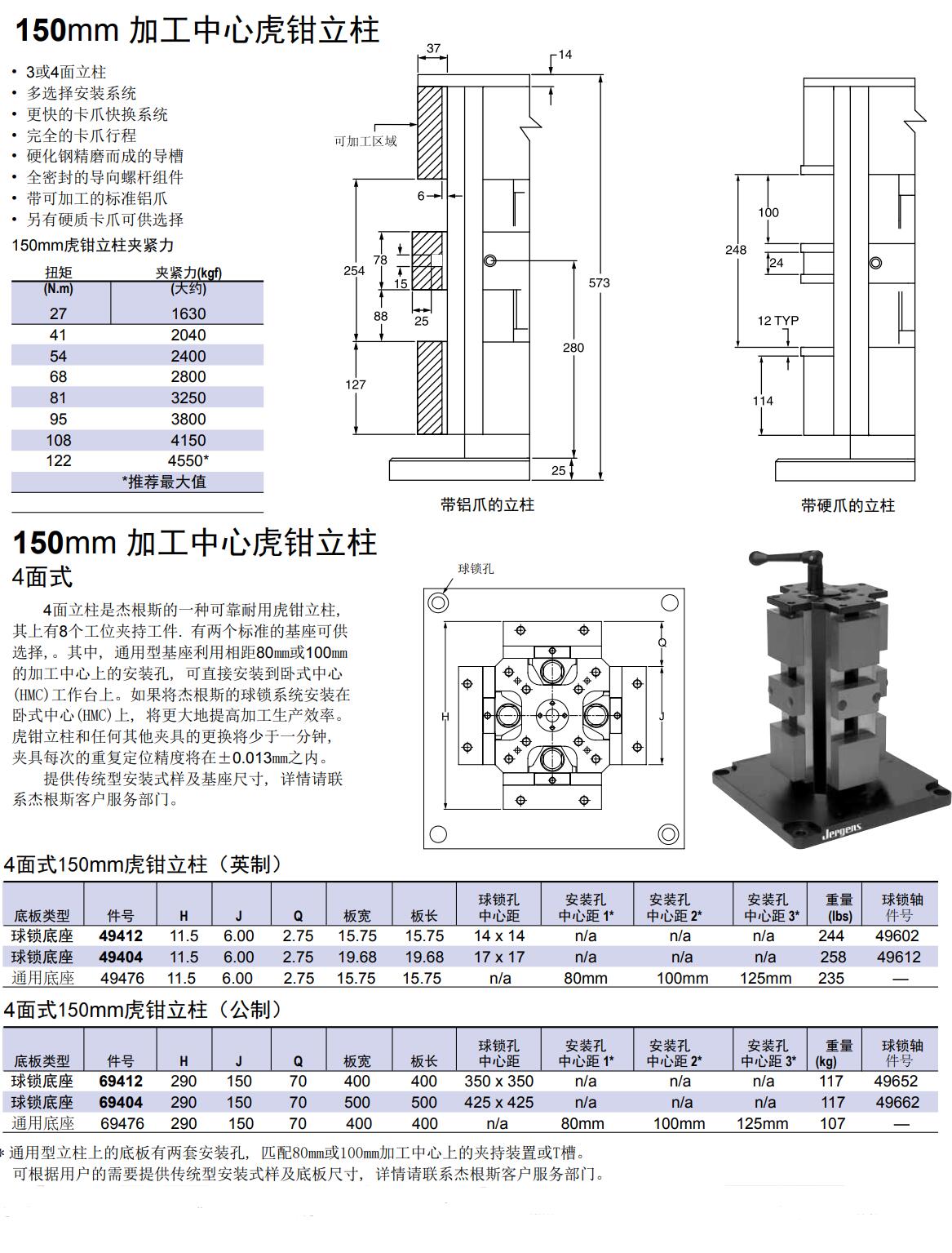 150mm 加工中心虎鉗立柱 4面式